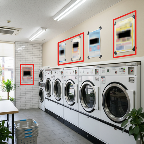 ポケット広告とは、2025年9月から始まった新しいサービスで、貸し会議室やレンタルスペース、コインランドリー等の壁面等に掲載する広告です。